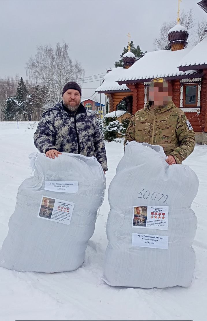 При храме Тихвинской иконы Божией Матери в г. Жуков, настоятель храма иерей Александр Гольцов, организовано волонтерское движение «Все для Победы». Неравнодушные мужчины, женщины, дети объединились, что вносить посильный вклад для помощи воинам в зоне СВО. Женщины вяжут, шьют, готовят, проводят закупки товаров. Мужчины помогают с доставкой, ремонтом швейных машин, шьют носилки. Но вот уже несколько месяцев при храме развивается направление по изготовлению маскировочных сетей. Плетут не только прихожане храма, но и дети в школах, студенты колледжа, пенсионеры.