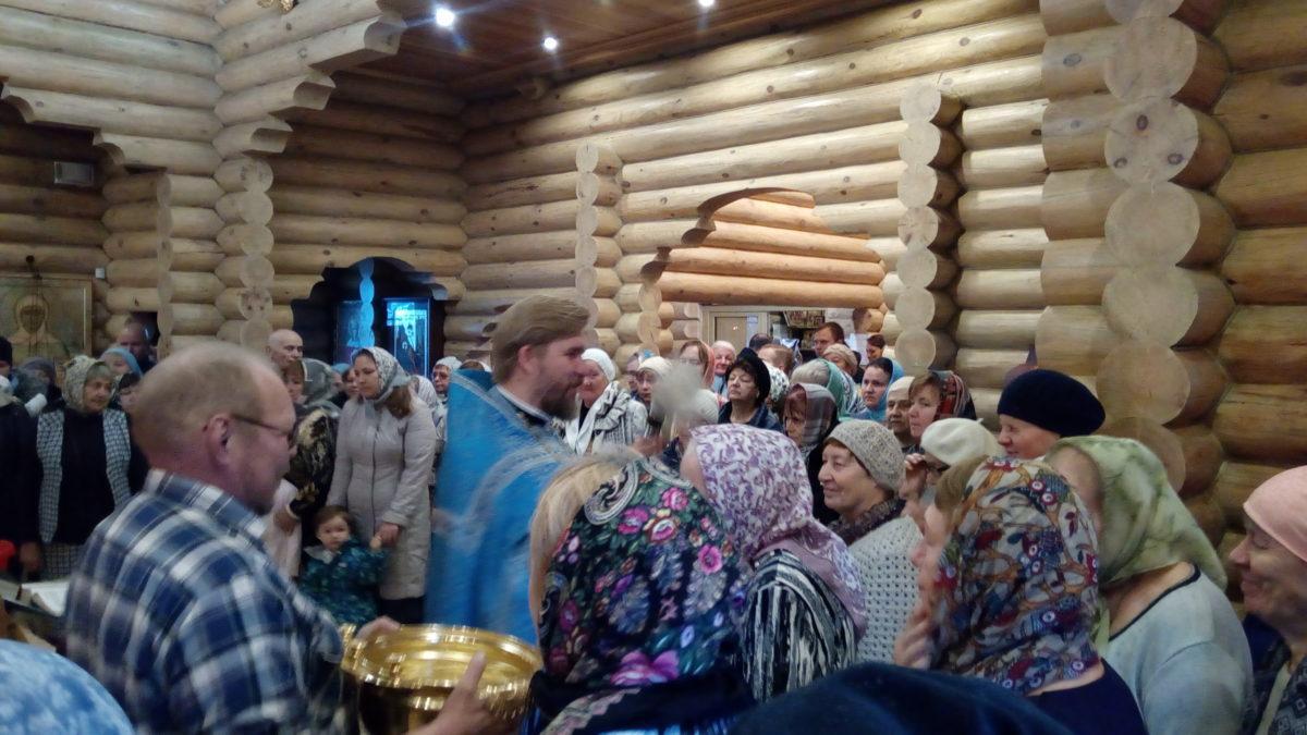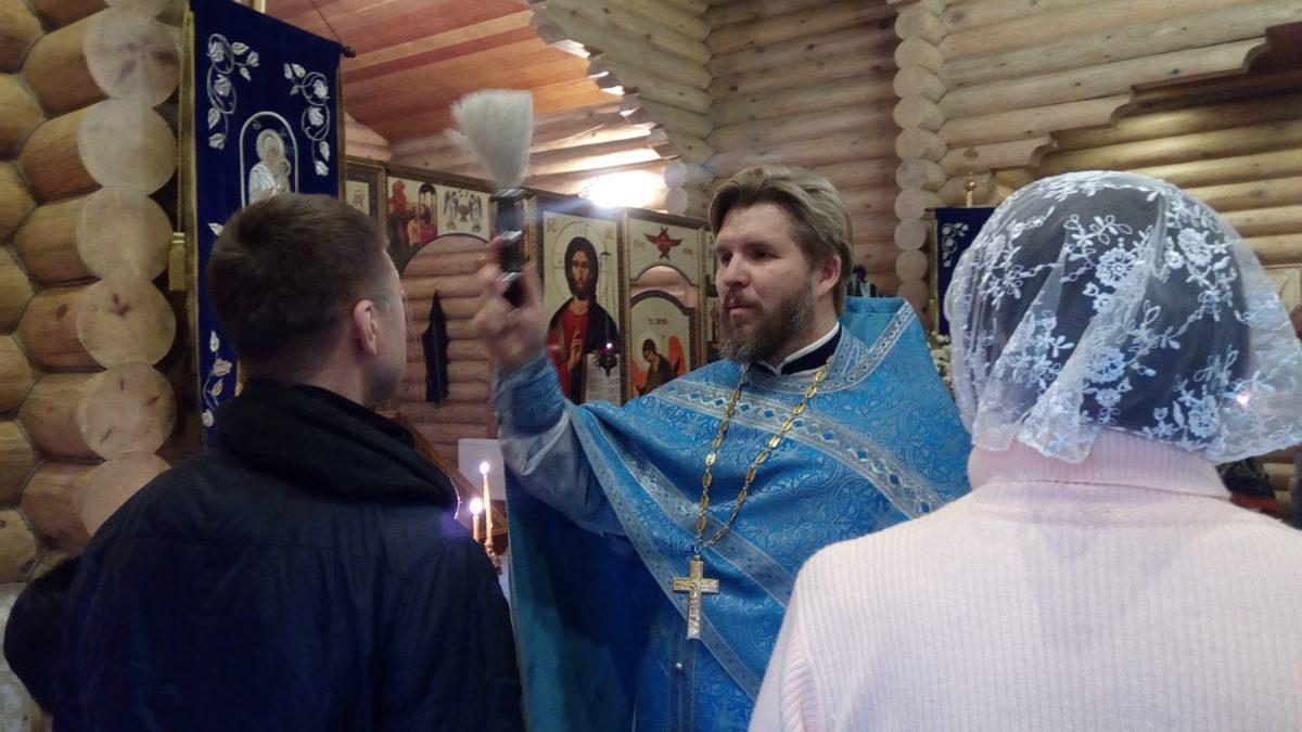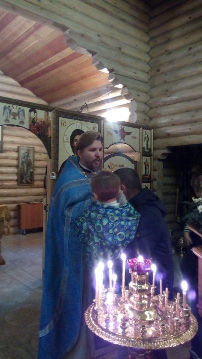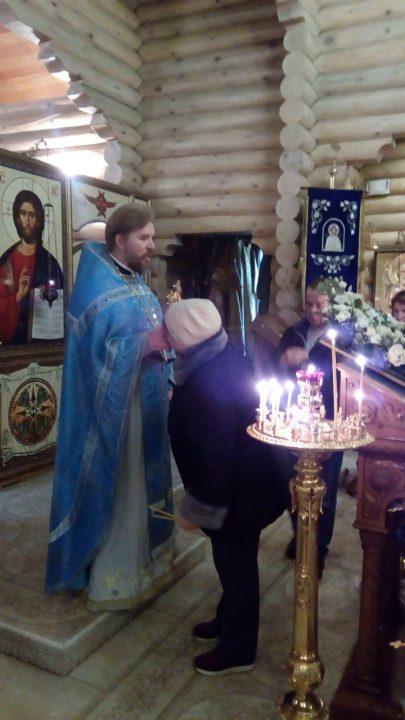 Многочисленные прихожане соединились посредством святого Причащения с Господом, очистив свою душу от тьмы греховной в Таинстве исповеди. По завершении литургии о.Александр отслужил водосвятный молебен окропив верующих святой водой, что еще больше усилило светлую радость этого дня. Поздравив всех с праздником напомнил священные события чтимого праздника и пожелал богомольцам неустанно стремиться к преуспеванию в добродетелях и смирении по примеру нашей Заступницы — Пречистой и Преблагословенной Девы Марии.