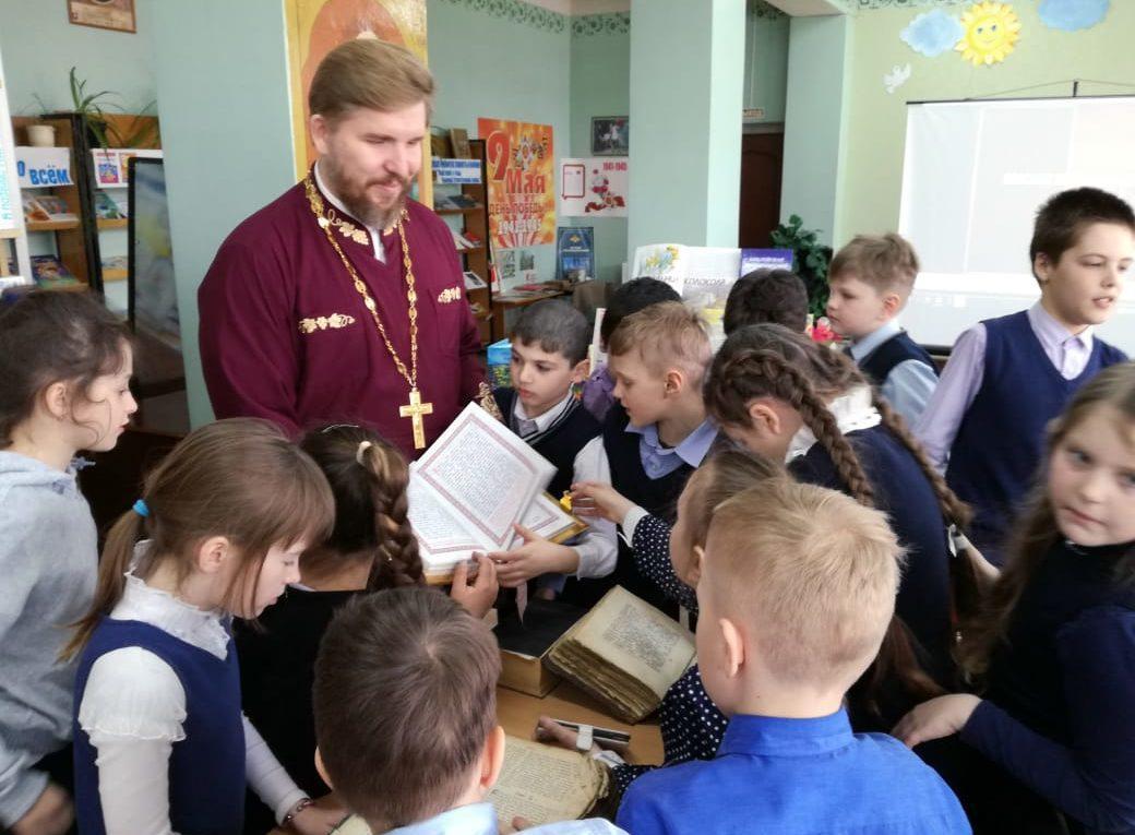 09 апреля 2019г. в рамках прошедшего празднования Дня Православной книги в МУК ЖМЦБ им. Н.Н.Ремизова иерей Александр Гольцов встретился с учениками третьего класса Жуковской школы №1 им. Н.С. Романова. И