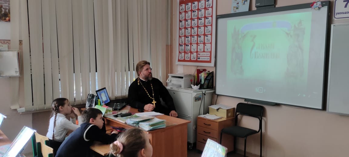 13 октября 2022 г. в рамках православного клуба «Исток» МУК ЖМЦБ им. Н.Н.Ремизова, прошла очередная беседа иерея Александра Гольцова с учениками третьего класса МОУ СОШ № 1 им. С.Ф.Романова.