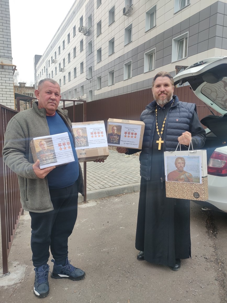 Много неравнодушных людей приходит в храм, желая внести свой вклад в наше общее дело. Для коробок с вещами для фронта, сделали и специальные наклейки. На них — маршал Победы, Георгий Константинович Жуков и Александр Невский с их знаменитыми фразами.