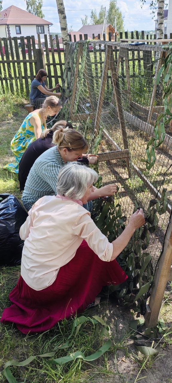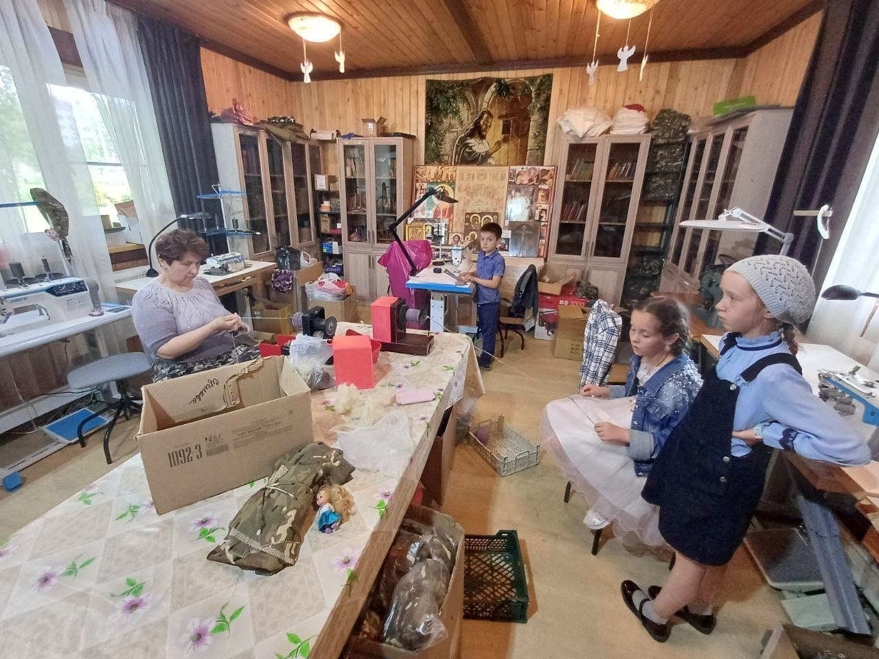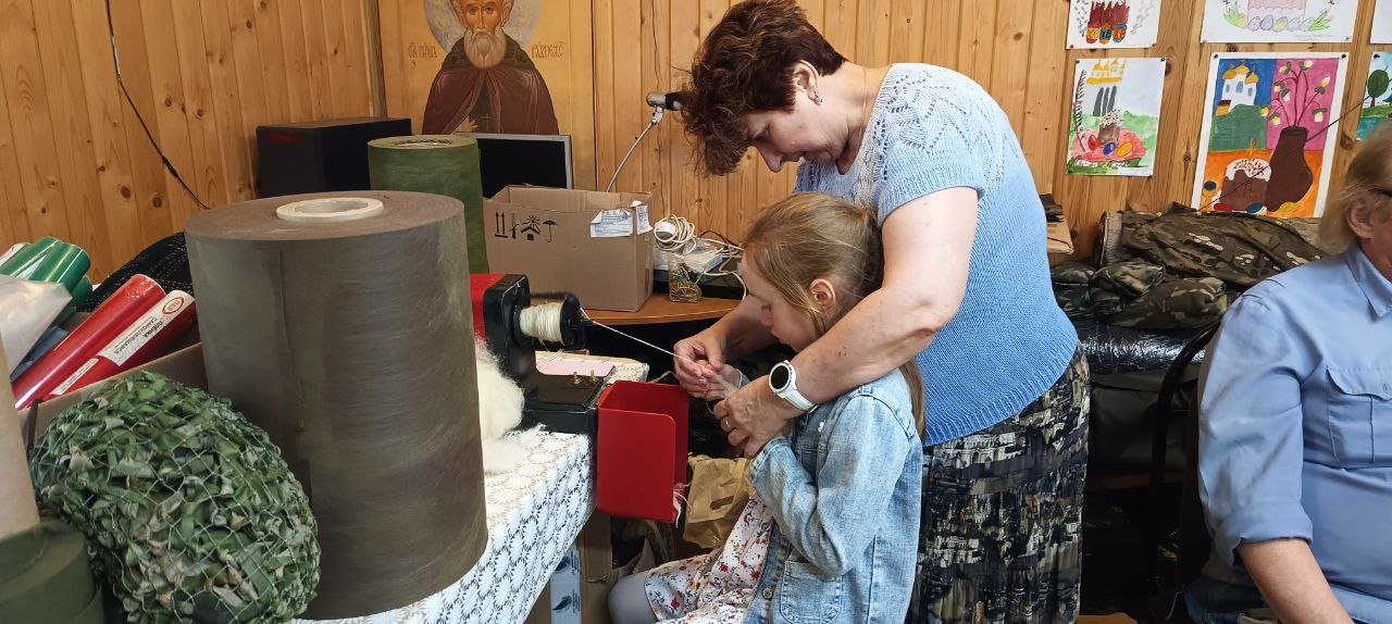09 июня 2024 года волонтерская группа «Все для Победы» при храме Тихвинской иконы Божией Матери в г. Жуков собрались вместе, чтобы провести мастер классы по изготовлению необходимых вещей для бойцов в зоне СВО. Каждому нашлась работа по силам – кто-то учился плести маскировочные сети, кто-то учился плести маскировку для головы, кто-то учился шить летние костюмы и пончо, проведен мастер класс для желающих научиться прясть. За день ученики смогли сплести одну маскировочную сеть 6 метров, сделали 5 маскировок на голову, спряли нитки и шили летние костюмы. Работа при храме кипит каждый Божий день без выходных. Пока желающие помогать учились, волонтеры успели отправить посылки для бойцов.