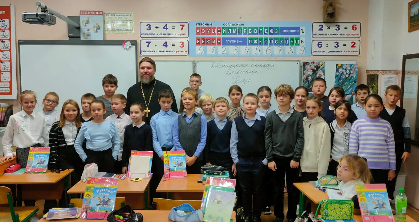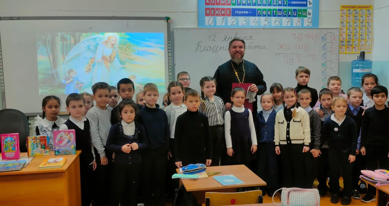 12 января 2024 г. в рамках православного клуба «Исток» МУК ЖМЦБ им. Н.Н.Ремизова, прошел урок иерея Александра Гольцова с учениками 1 «В» класса МОУ СОШ № 1 им. С.Ф.Романова. В
