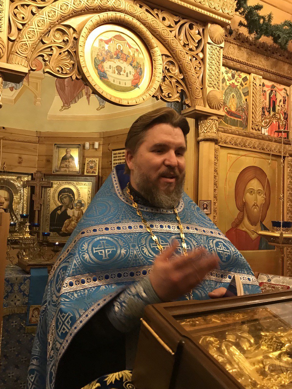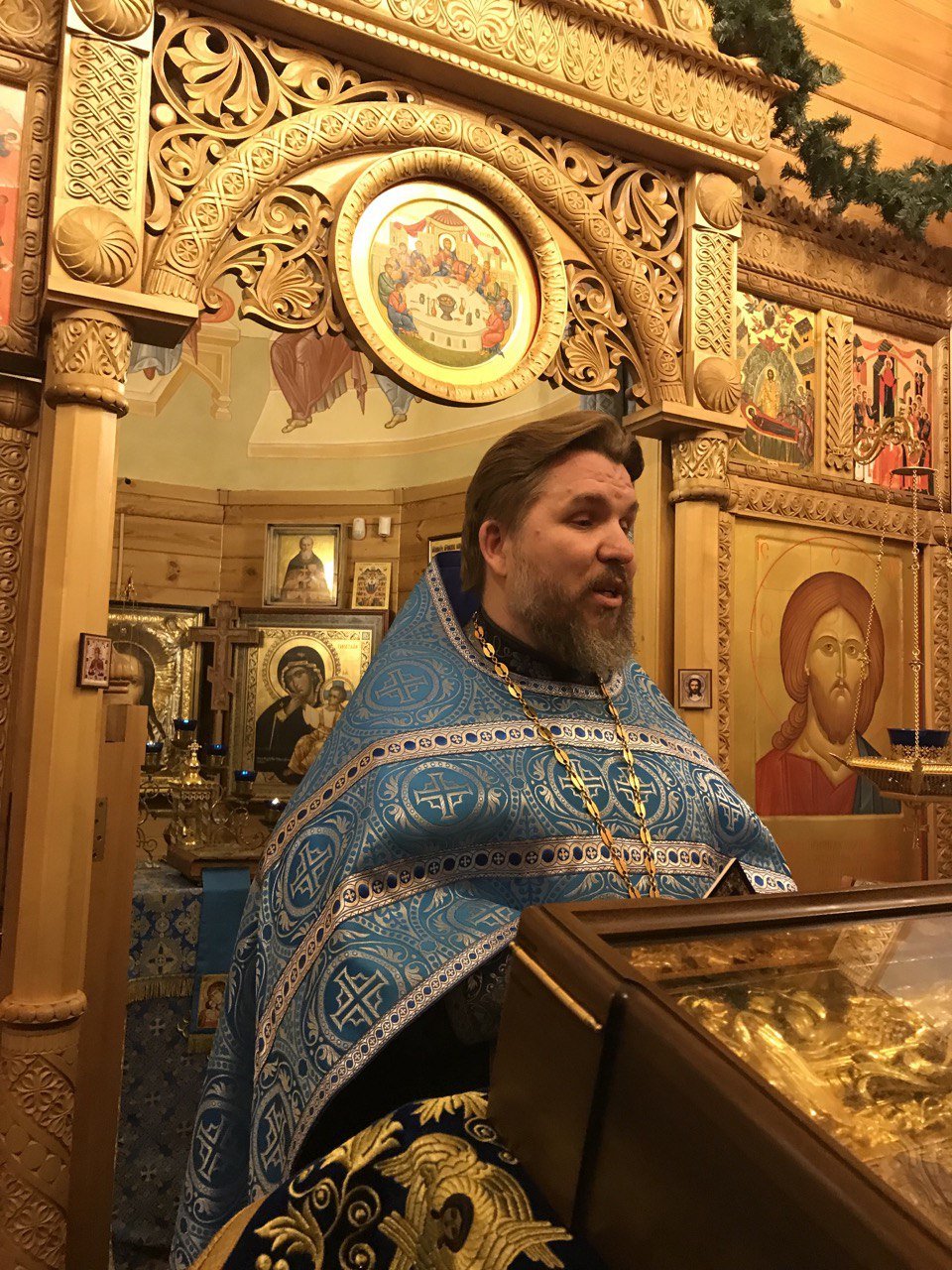 Приехав туда, там нас с радостью встретил хранитель иконы Сергей. Отец Александр отслужил молебен с чтением акафиста и мы все дружно пели его и молились Божией Матери. Затем под пение «Царице моя Преблагая» и молитвы Богородице мы приложились к иконе прося Божию матушку каждый о своем, а батюшка Александр помазал всех благоухающим Миро.