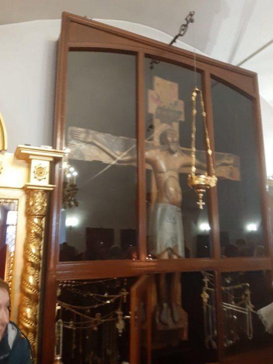 Успешно добравшись до места по молитвам преподобного мы прочитали ему акафист и приложились к его святым мощам. Затем всем было предоставлено свободное время, мы смогли подать записки, набрать воды из целебного источника и приобрести подарки себе и нашим ближним. Побывав в духовной столице России мы направились в село Годеново неподалеку от города Переславль-Залеский. Приложиться к Животворящему Кресту Господню. По пути заехали в монастырь приложиться к мощам преподобного Никиты Столпника. Приехав в Годеново прочитав акафист Животворящему Кресту о.Александр помазал всех священным маслом с лампады.