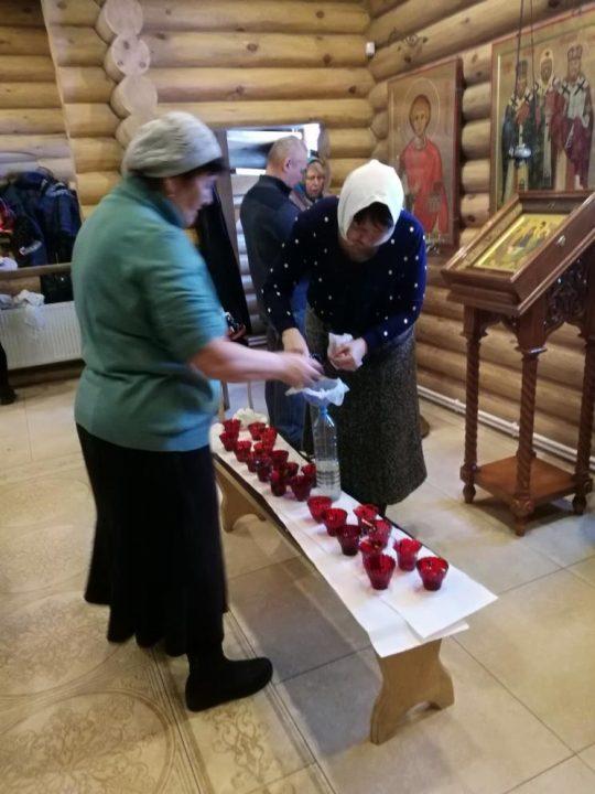 Вечером перед закрытием храма можно было наблюдать плоды трудов верующих: позолоченные поверхности засверкали, как новые, а стены, окна и киоты икон посвежели — все готово к встрече праздника.