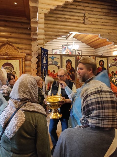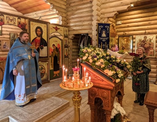 14 октября Святая Церковь празднует Покров Пресвятой Владычицы нашей Богородицы и Приснодевы Марии. В этот день в храме Тихвинской иконы Божией Матери в г.Жуков была отслужена праздничная Божественная Литургия, а накануне вечером Всенощное бдение. Богослужение совершил настоятель храма иерей Александр Гольцов.
