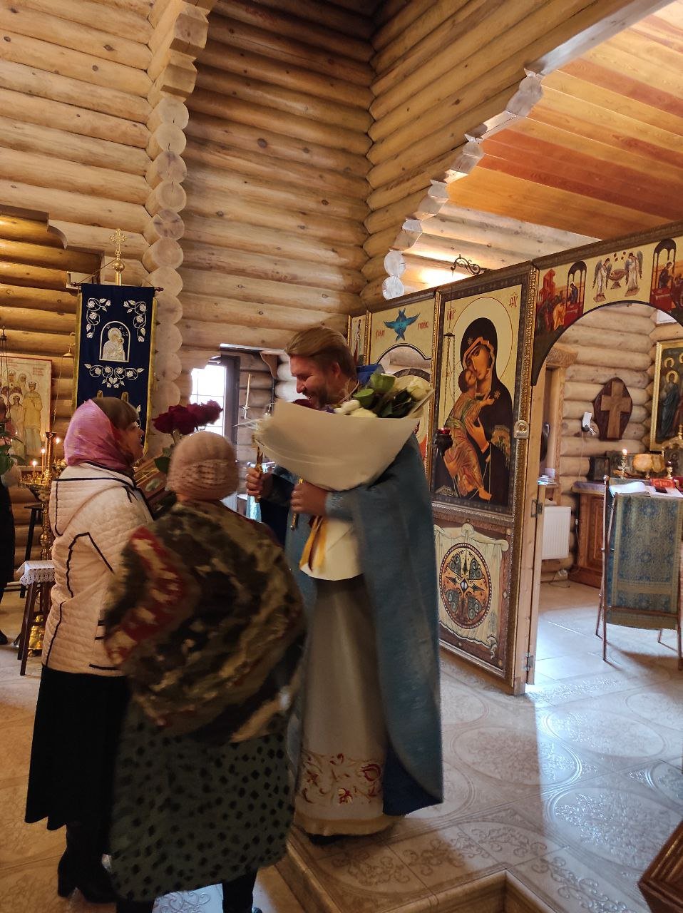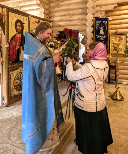 По окончании Литургии настоятель храма обратился к участникам Богослужения с проповедью и поздравлением.
