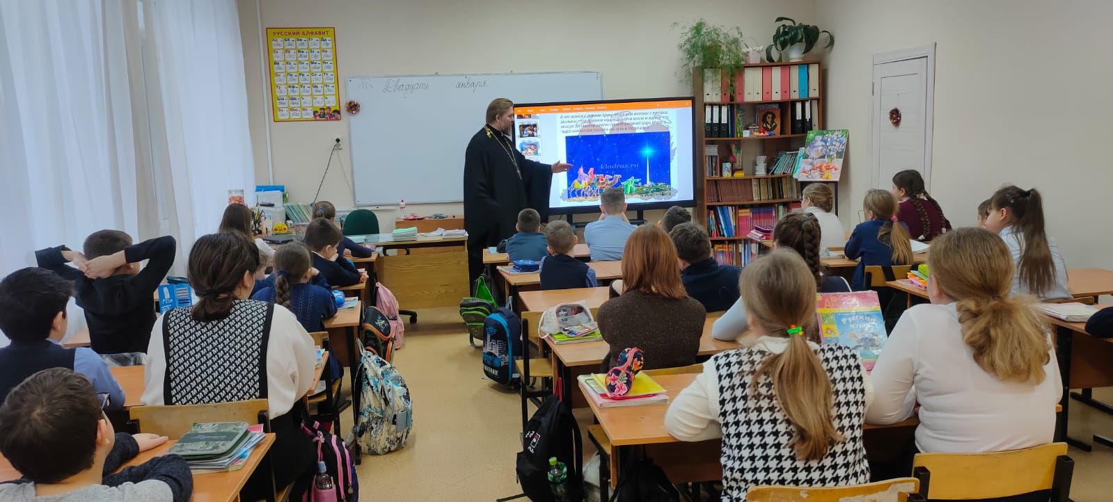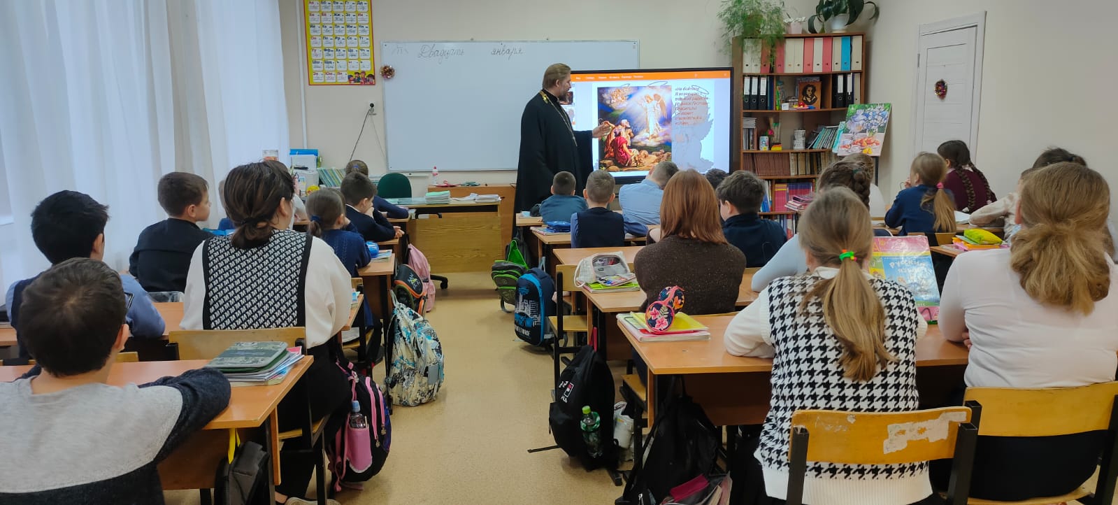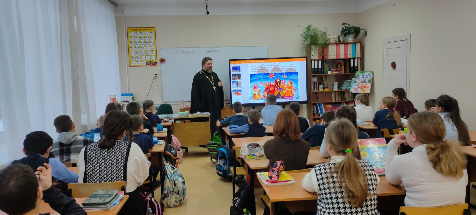 Православные праздники января. Встреча с учениками 3 и 4 классов МОУ СОШ № 1 им. С.Ф.Романова.