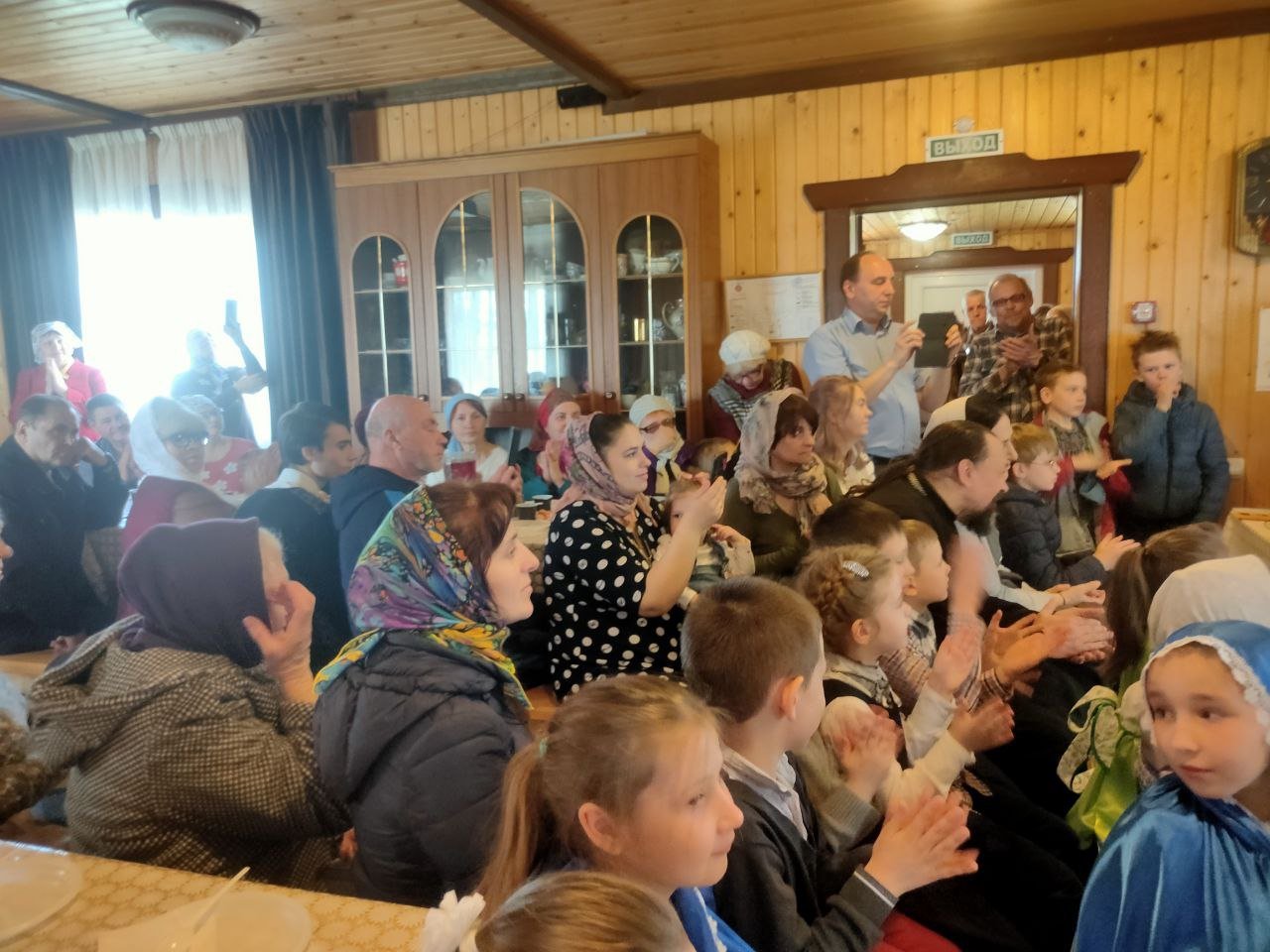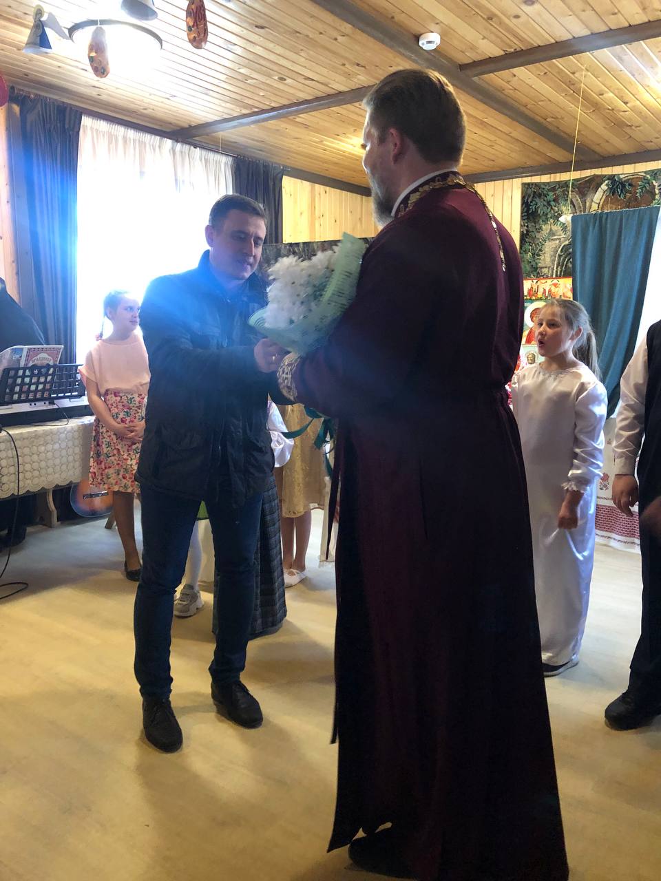 С Пасхальной радостью о воскресшем Господе, обратился ко всем настоятель храма иерей Александр Гольцов. Он говорил, о важности идти за Христом здесь, в этом мире, и продолжать, объединяясь, наши совместное делание на ниве служения Ему, Спасителю мира, чтобы затем вечно пребыть с Ним там – в Его Царстве. Настоятель пожелал всем мира, семейного счастья, здравия и нескончаемой милости от воскресшего Христа Жизнодавца, Бога нашего. Батюшка выразил огромную и сердечную благодарность руководителю воскресной школы Хохловой Любови, преподавателям Карпузовой Ирине, Нежданову Игорю за их многодневный труд во славу Божию и подготовку детей к выступлению.