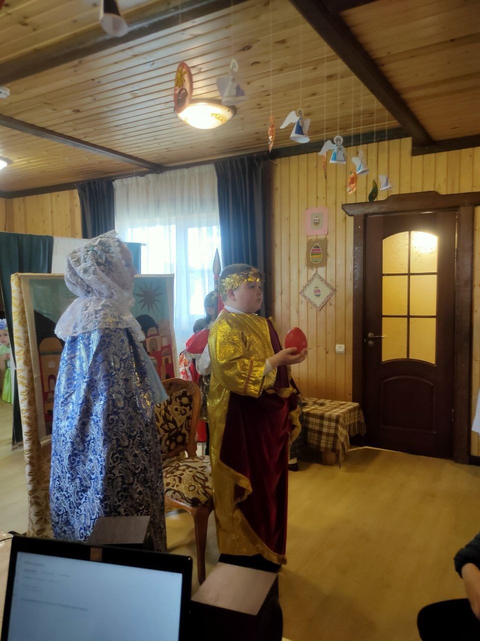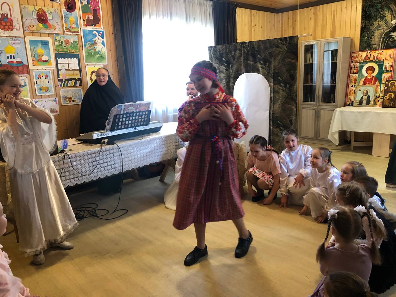 Каждый год наши юные воспитанники радуют нас новыми сказочными постановками. Вот и в этом году мы увидели спектакль по сказке Г. Х. Андерсена «Пятеро в одном стручке». Затем спели песни, рассказали стихи, станцевали русский народный танец и спели песню по мотивам сказки Г.Х. Андерсена «Дикие лебеди» изображая героев и события, происходящие в сказке. Искренность и открытость юных актёров, замечательные костюмы и декорации сделали Пасхальный концерт действительно ярким и праздничным событием жизни прихода, а пасхальное приветствие, прозвучавшее со сцены из детских уст, наполнило сердца всех гостей радостным и благодарным чувством. В завершении состоялась праздничная трапеза для всех.