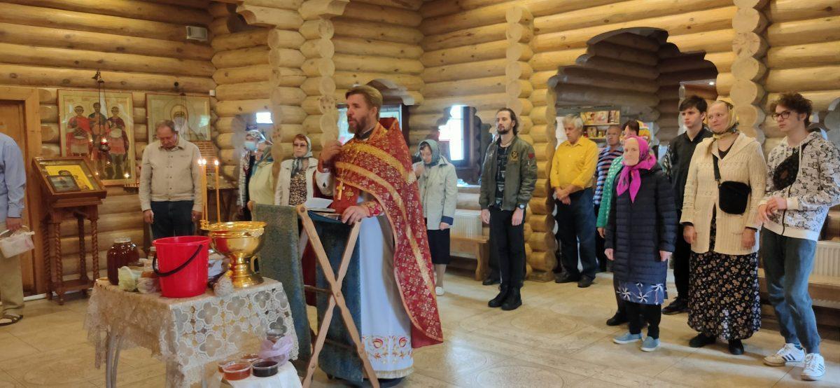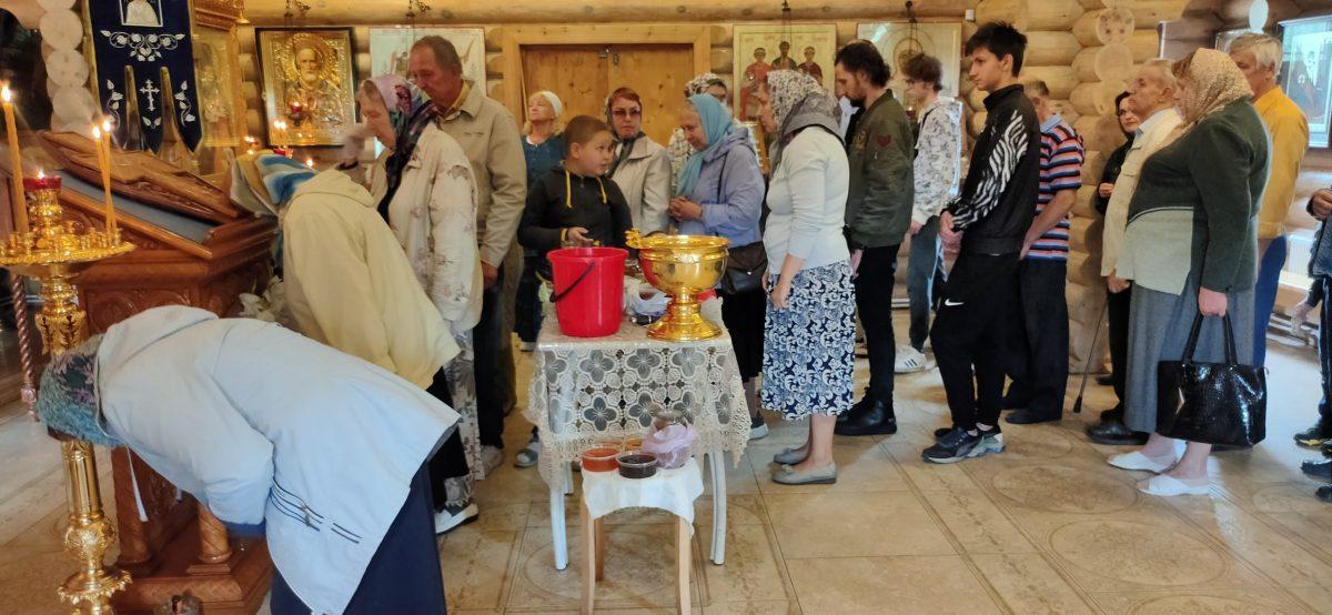 В храме Тихвинской иконы божией Матери в г.Жуков прошла праздничная Божественная Литургия. По окончании Литургии по традиции совершено освящение воды и меда.