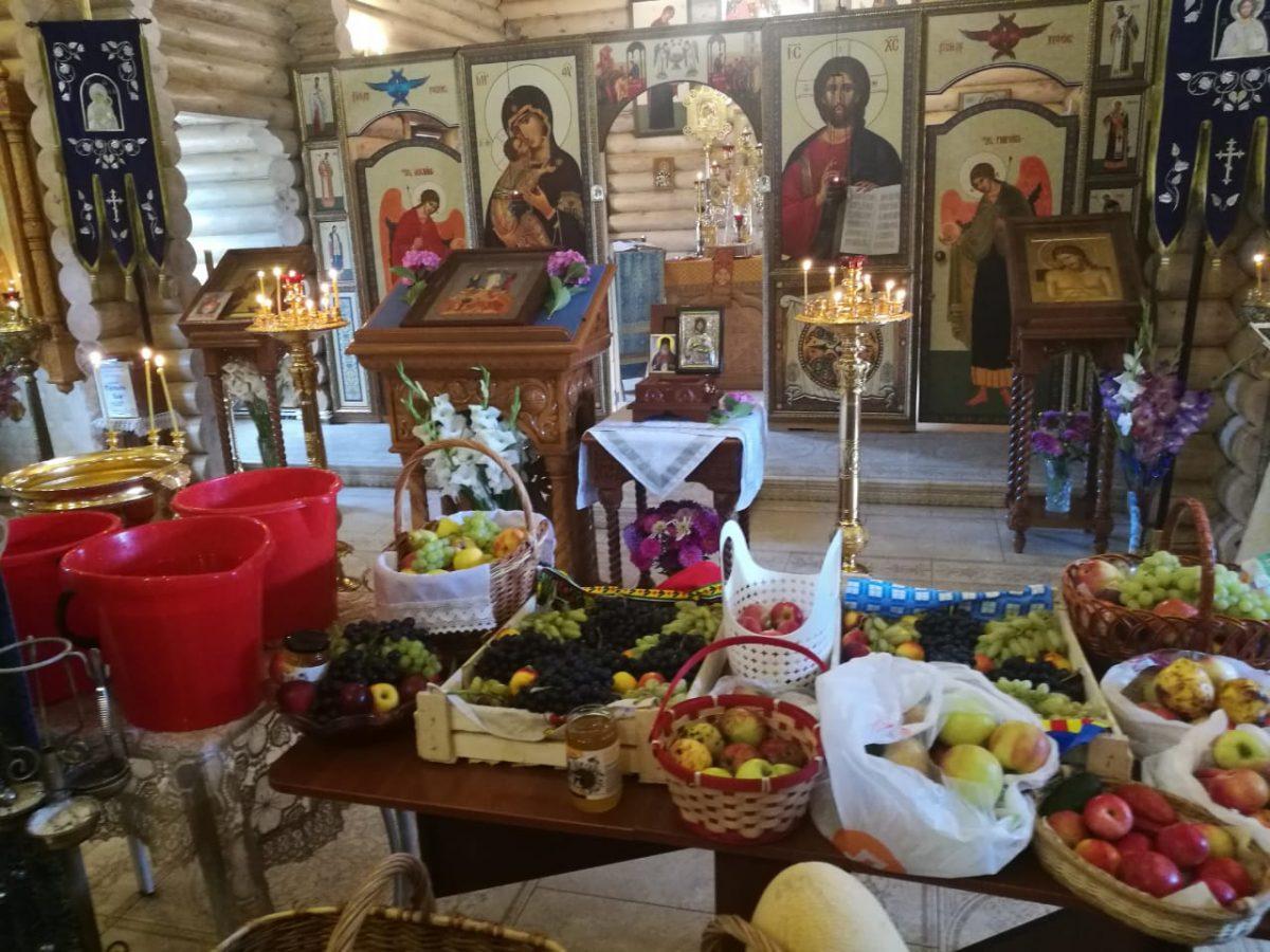 Все в этот праздничный день радует и солнышко на улице, и белые облачные облачения священников, и величественное пение певчих на клиросе и хороший урожай дарованный нам Господом в этом году. Зная, что праздник Преображения отличается и тем, что по окончании Литургии, благославляются и освящаются принесенными верующими в храм винограда, яблок, груш и прочего урожая, многие наши прихожане принесли фрукты и плоды со своих огородов. Традиция эта идет еще с Иерусалима, в котором к этому времени созревает урожай винограда, который собственно и положено освящать в этот день, как посвящение и благодарение Богу.