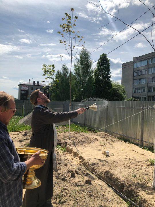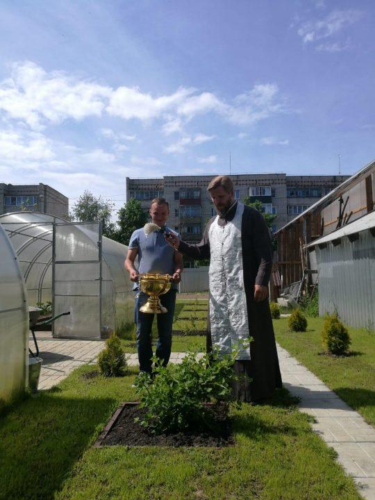В г. Жукове сразу же после водосвятного молебна о. Александр отправился освящать территорию и посадки в нашем храме, и к мирянам, с кем ранее были достигнуты договоренности.