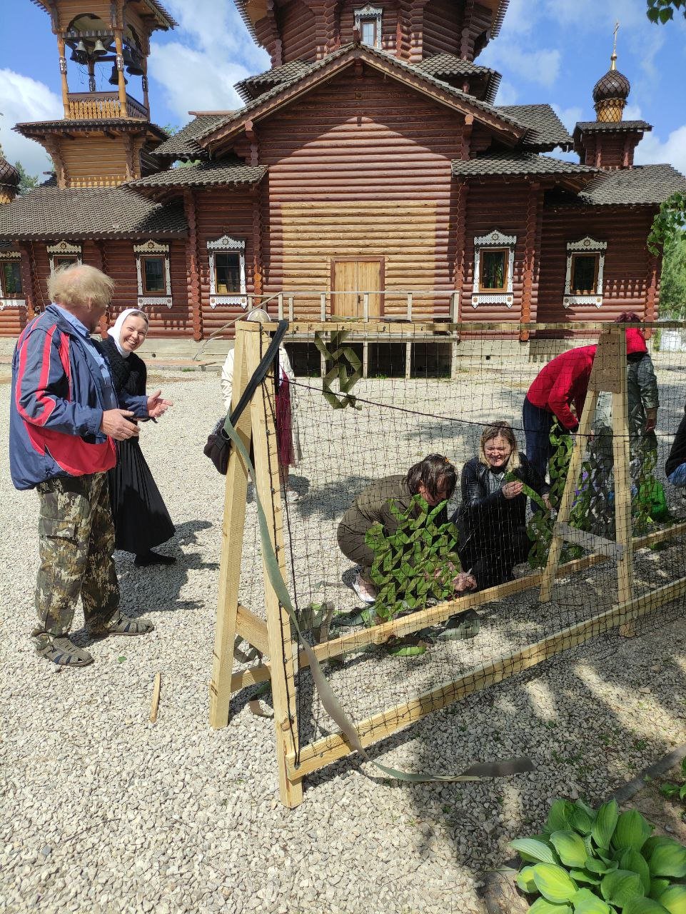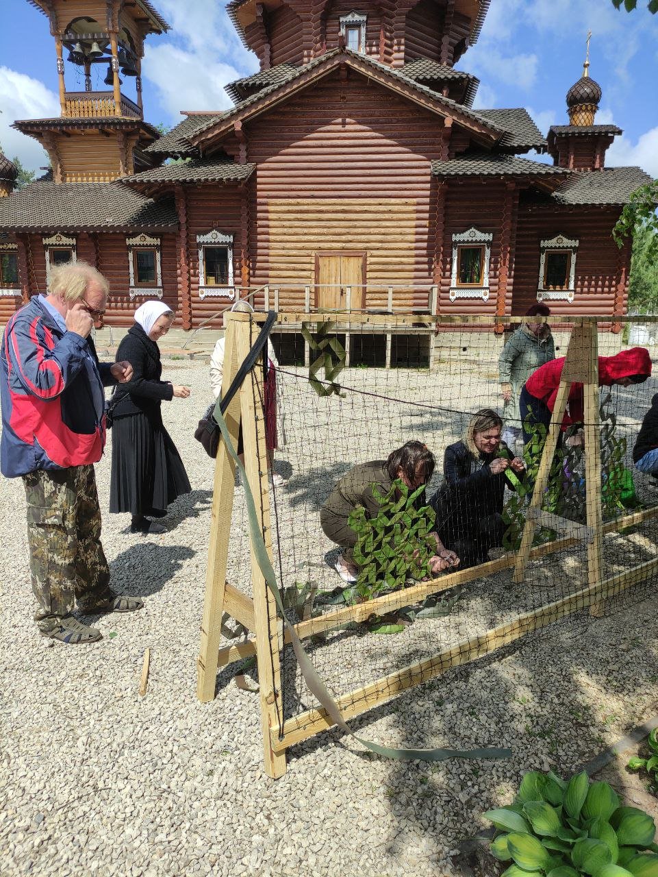 Отрадно было видеть, как трудились и мужчины, и женщины, и с радостным смехом воодушевляли нас всех, наши дети. Каждому нашлась работа по силам – кто-то учился плести маскировочные сети, кто-то учился плести маскировку для головы, кто-то учился шить флисовые кофты, проведен мастер класс для желающих научиться прясть. За день ученики смогли сплести две маскировочные сети на 3 метра и 6 метров, сделали 5 маскировок на голову, спряли нитки и шили флисовые кофты. Работа при храме кипит каждый Божий день без выходных.