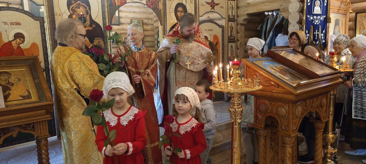 Настоятель храма иерей Александр Гольцов за Богослужением поздравил всех женщин и девочек с днем святых жен-мироносиц, отметив, что со времен чествуемых ныне верных учениц Христа жертвенный подвиг служения женщины не иссяк.