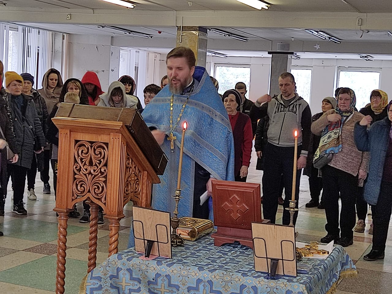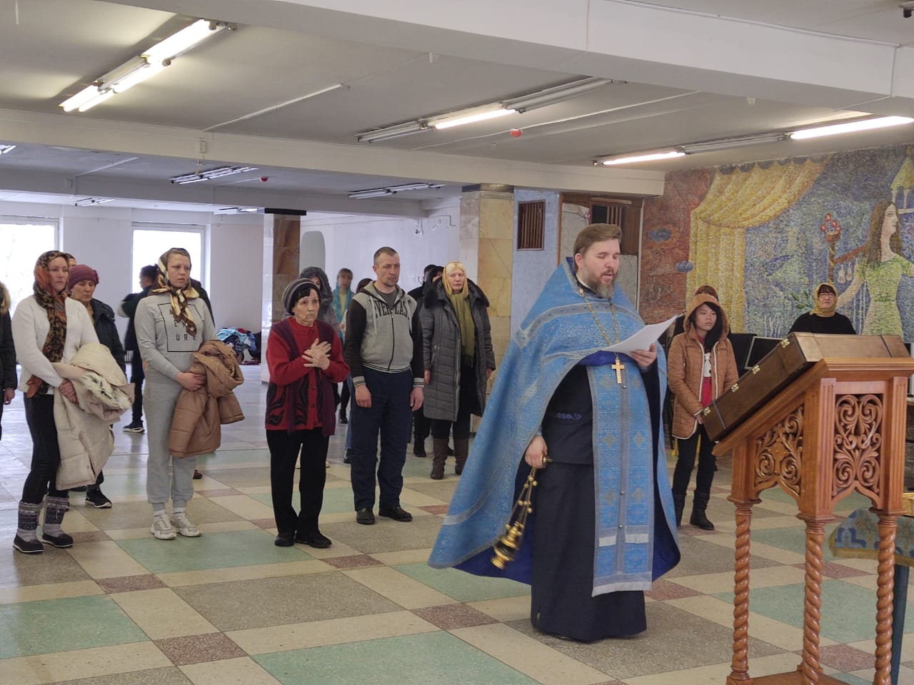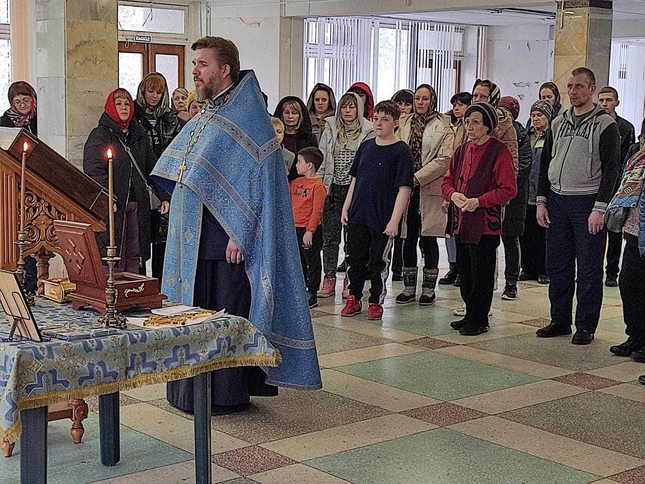 По благословению о.Александра мы с иконой Пресвятой Богородицы «Умягчение злых сердец» поехали в пункт временного размещения для беженцев из ЛНР и ДНР, который духовно окормляет о. Александр, отслужили там молебен о прекращении войны и наступлении мира. Очень много людей пришли поклониться и приложиться к Божией Матери. Сколько боли и слез читались в глазах беженцев, сколько надежды и упования на помощь Божией Матери. На память о этой встрече всем подарили иконки Пресвятой Богородицы, которые они прикладывали к мироточивой иконе, а отец Александр помазывал всех благоухающим миро. Помолившись в ПВР мы снова вернулись в храм Тихвинской иконы Божией Матери, где уже ждали люди, чтоб помолиться перед взором Богородицы и в этот праздник Благовещения умолить Божию Матерь помочь устроить мир, спасти души наши.