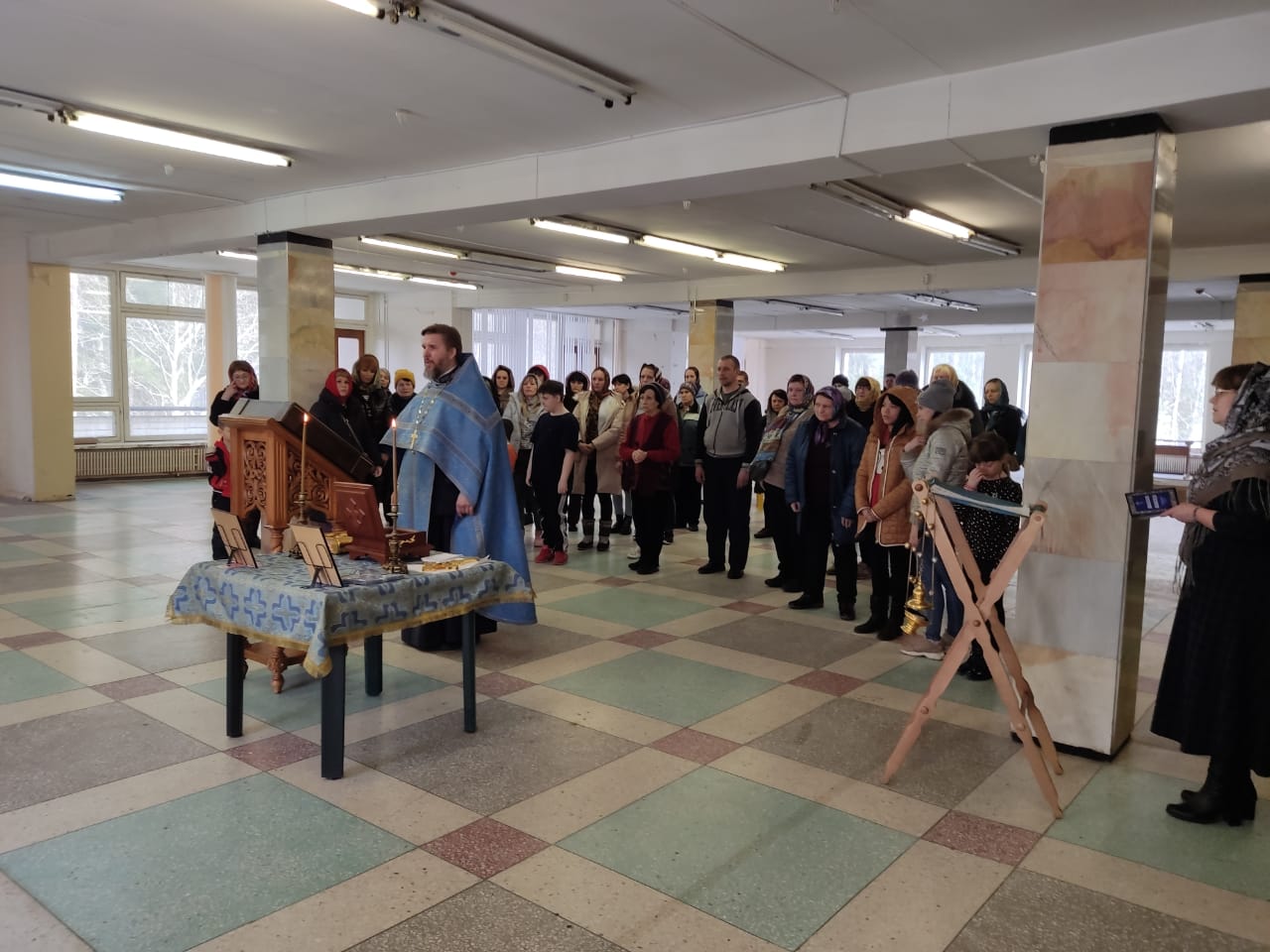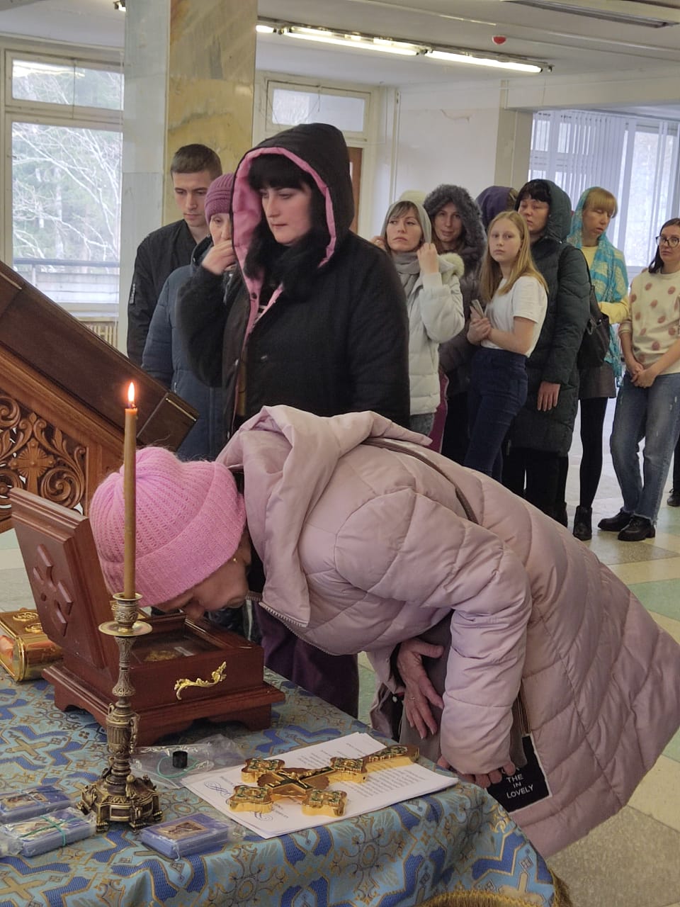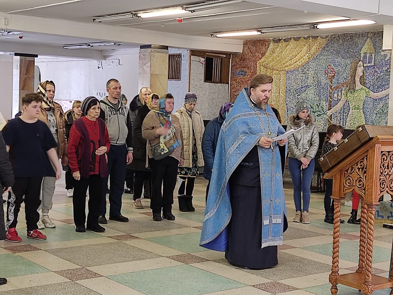 По благословению о.Александра мы с иконой Пресвятой Богородицы «Умягчение злых сердец» поехали в пункт временного размещения для беженцев из ЛНР и ДНР, который духовно окормляет о. Александр, отслужили там молебен о прекращении войны и наступлении мира. Очень много людей пришли поклониться и приложиться к Божией Матери. Сколько боли и слез читались в глазах беженцев, сколько надежды и упования на помощь Божией Матери. На память о этой встрече всем подарили иконки Пресвятой Богородицы, которые они прикладывали к мироточивой иконе, а отец Александр помазывал всех благоухающим миро. Помолившись в ПВР мы снова вернулись в храм Тихвинской иконы Божией Матери, где уже ждали люди, чтоб помолиться перед взором Богородицы и в этот праздник Благовещения умолить Божию Матерь помочь устроить мир, спасти души наши.