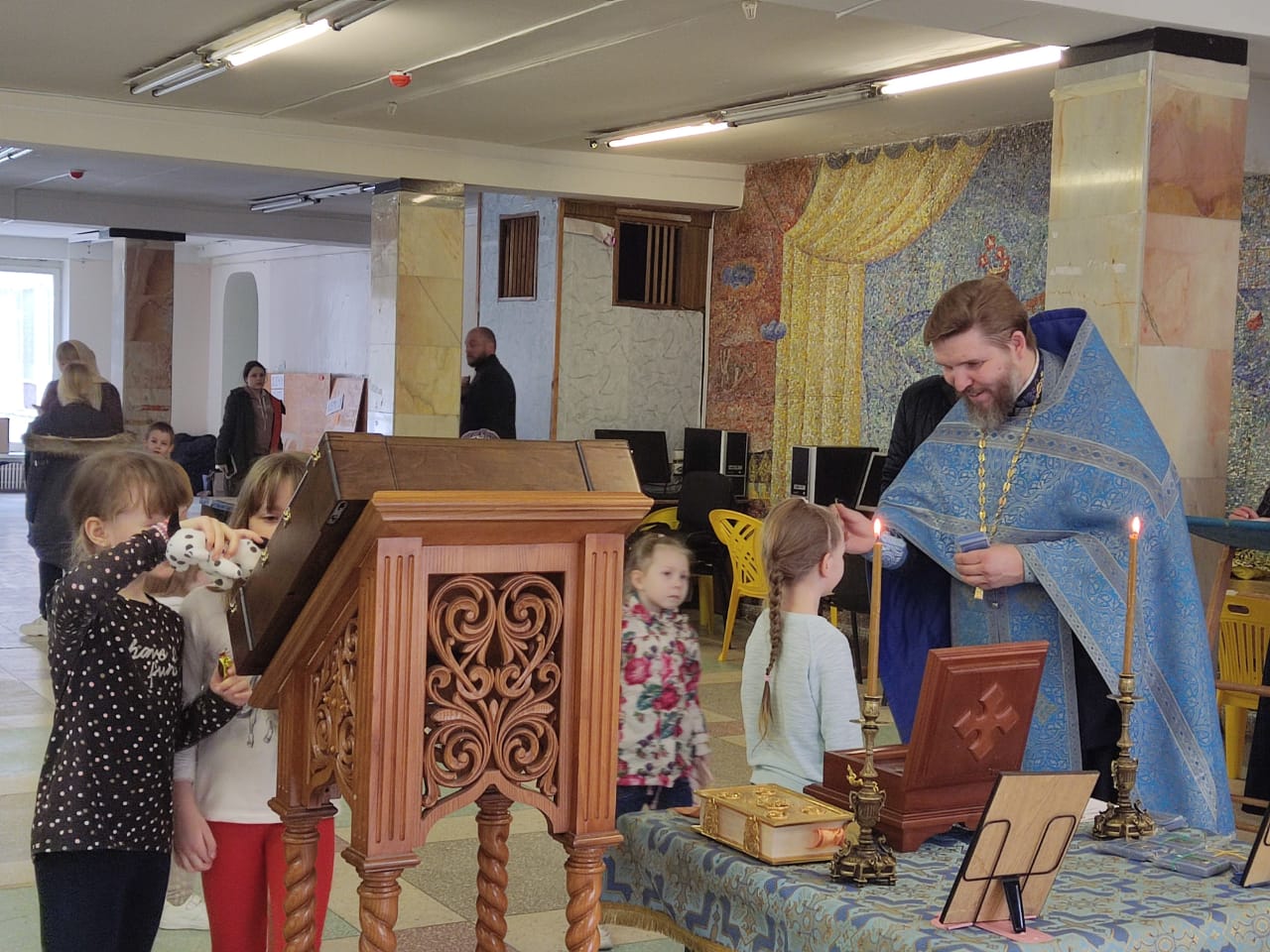 Торжественную литургию совершил настоятель храма иерей Александр Гольцов. В праздник, именуемый Церковью началом нашего спасения, многочисленные прихожане причастились Святых Христовых Тайн, очистив свою душу от тьмы греховной в Таинстве исповеди.
