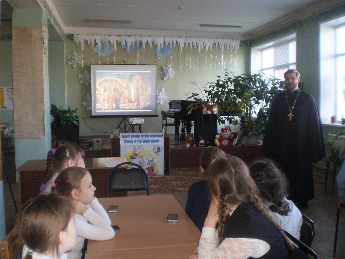 19 февраля 2019г. в МУК ЖМЦБ им. Н.Н.Ремизова иерей Александр Гольцов встретился с учениками третьего класса Жуковской школы №1 им. Н.С. Романова.