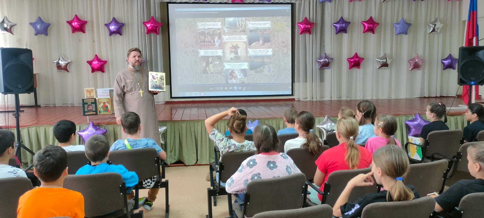 18 июня 2024 г. в рамках православного клуба «Исток» МУК ЖМЦБ им. Н.Н.Ремизова, прошла очередная беседа иерея Александра Гольцова с ребятами летнего лагеря МОУ СОШ № 1 им. С.Ф.Романова.
