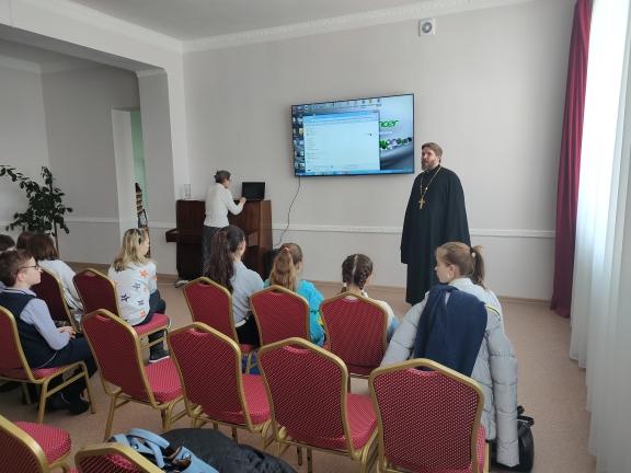 19 февраля 2021 г. в МУК ЖМЦБ им. Н.Н.Ремизова состоялась встреча настоятеля храма Тихвинской иконы Божией Матери в г.Жуков иерея Александра Гольцова с учениками шестого класса Жуковской школы №1 им. Н.С. Романова. Встреча была посвящена двунадесятому празднику «Сретение Господне».