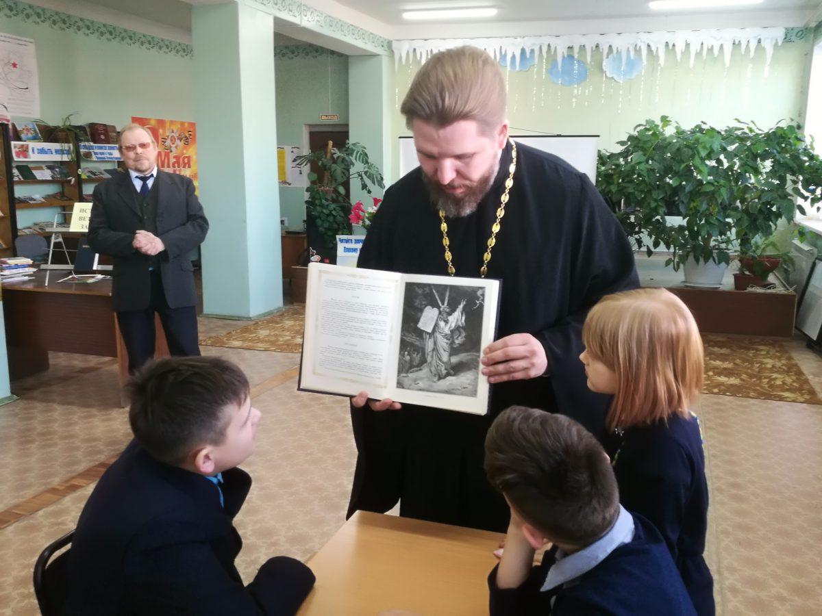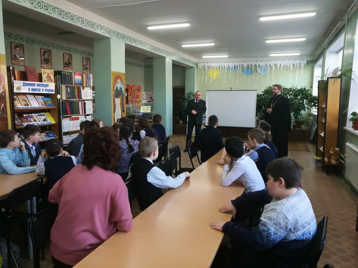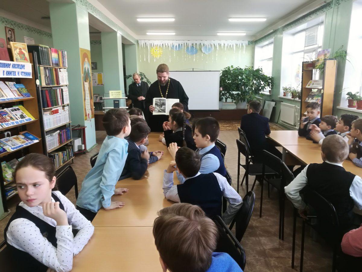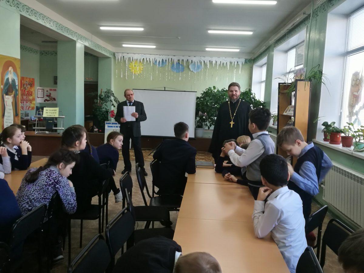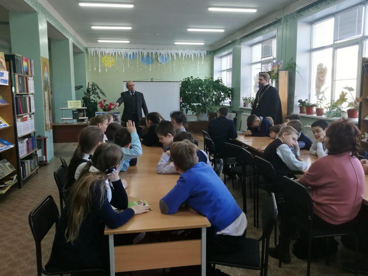 10 февраля 2020 г. в МУК ЖМЦБ им. Н.Н.Ремизова состоялась встреча настоятеля храма Тихвинской иконы Божией Матери в г.Жуков иерея Александра Гольцова с учениками четвертого класса Жуковской школы №1 им. Н.С. Романова. Встреча была посвящена повторению пройденных материалов по Ветхозаветному времени.