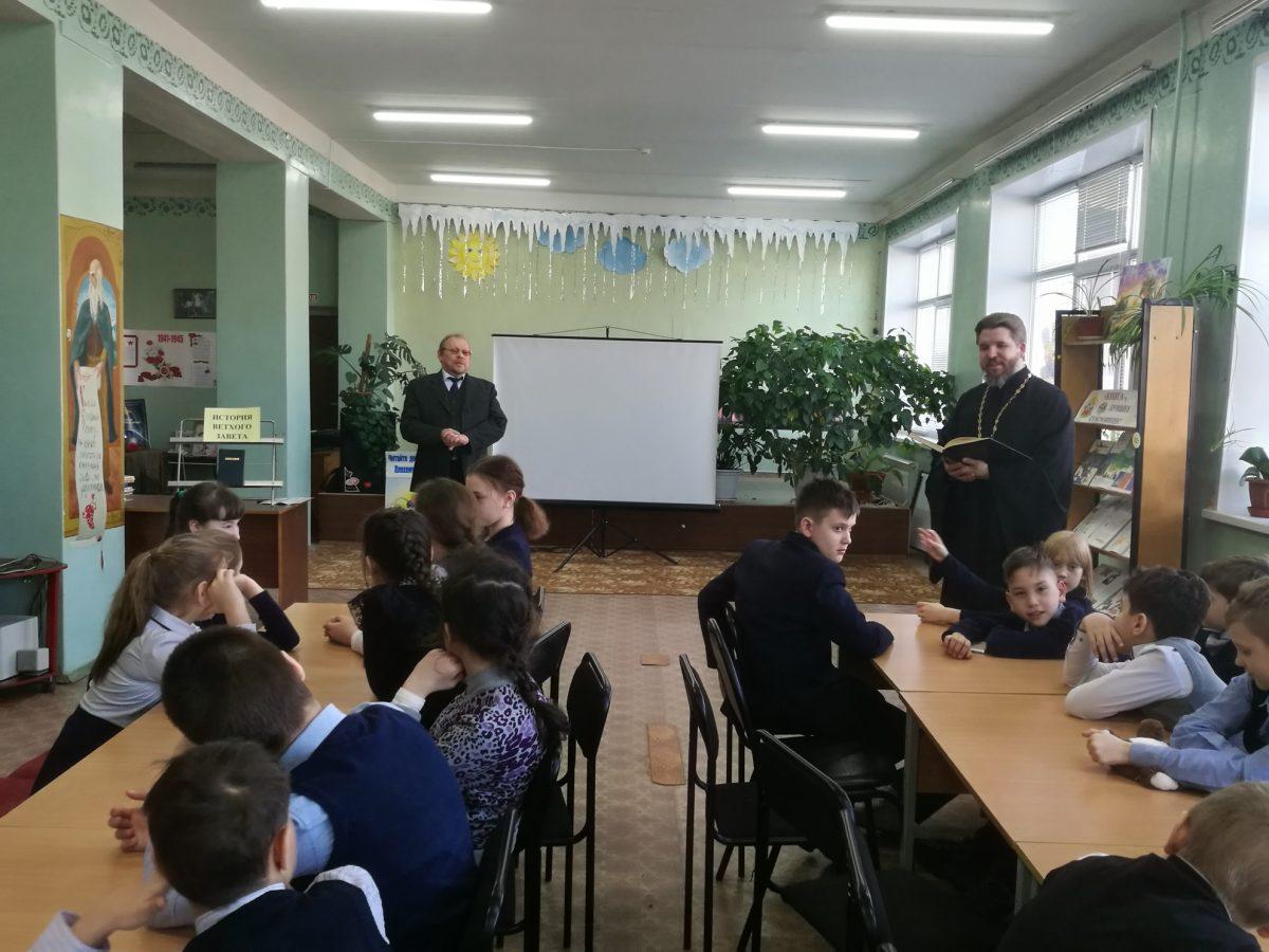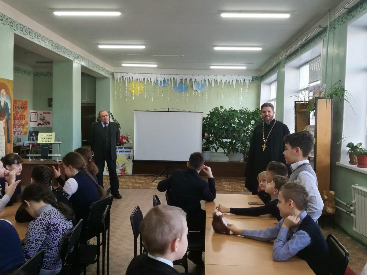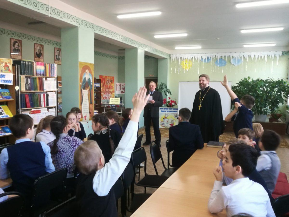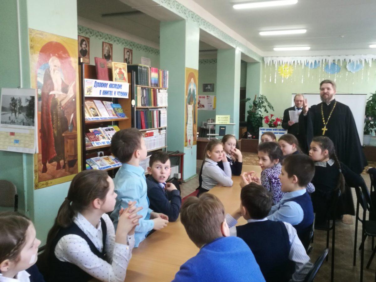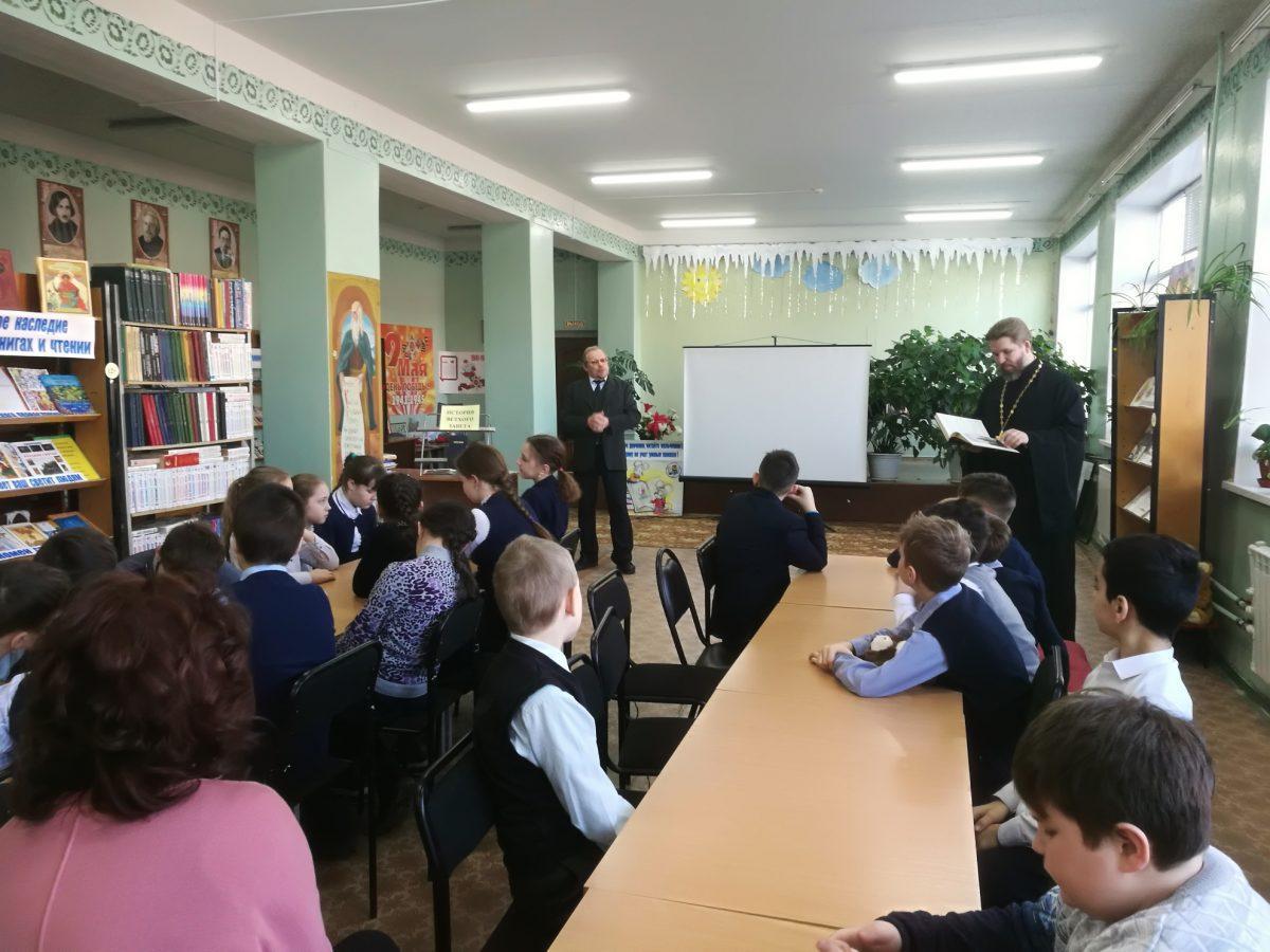 10 февраля 2020 г. в МУК ЖМЦБ им. Н.Н.Ремизова состоялась встреча настоятеля храма Тихвинской иконы Божией Матери в г.Жуков иерея Александра Гольцова с учениками четвертого класса Жуковской школы №1 им. Н.С. Романова. Встреча была посвящена повторению пройденных материалов по Ветхозаветному времени.