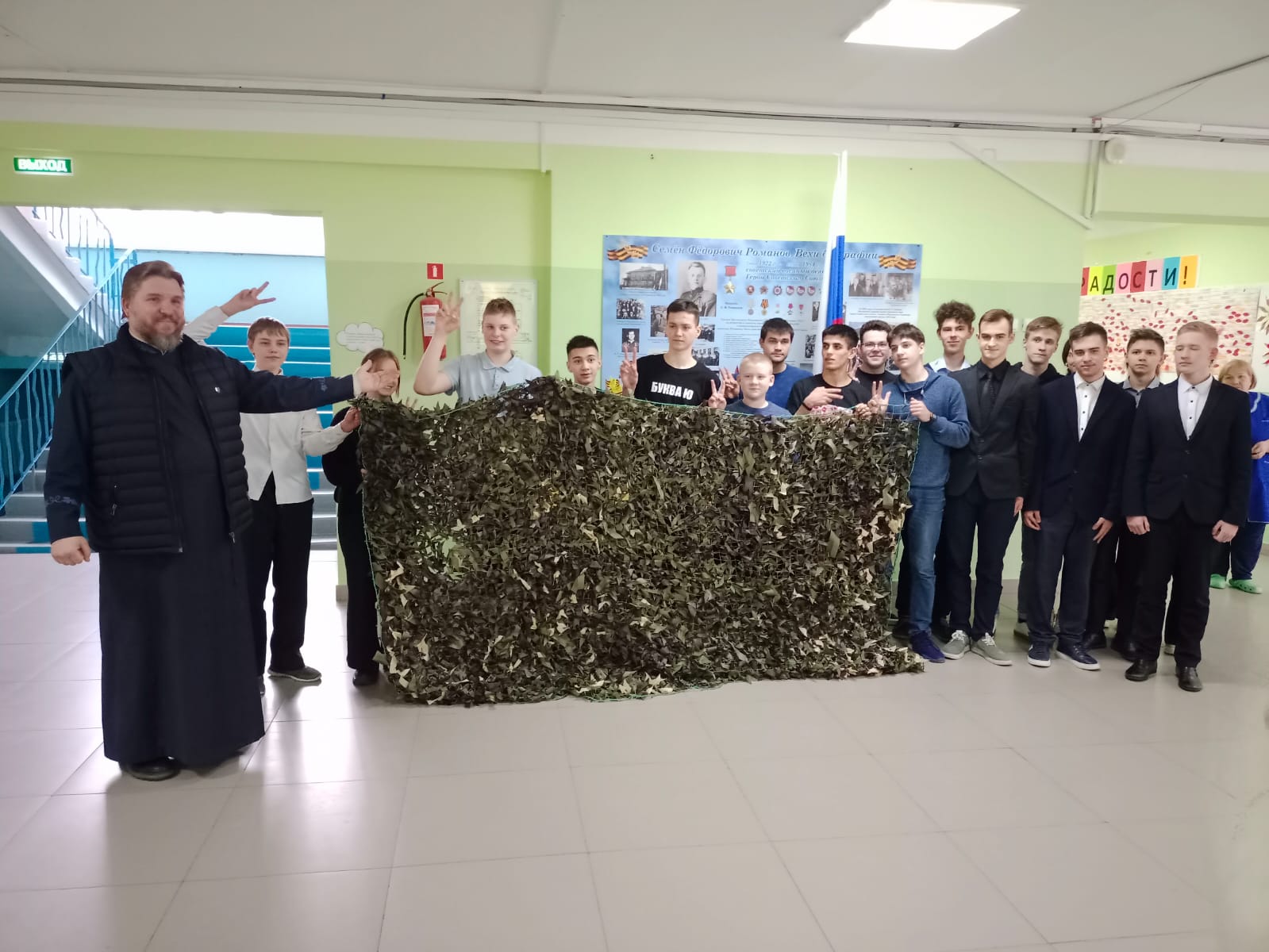На днях отец Александр побывал и пообщался с учениками в МОУ СОШ № 1 им. С.Ф. Романова г. Жуков. Ребята сделали хорошую маскировочную сеть. Вы не представляете, как приятно было с ними общаться, они прям живые, горят добром, веселые, энергичные. Не успели снять одну сеть, так они сами с батюшкой тут же натянули новую 6 метровую. И несмотря на то, что с понедельника у них начались каникулы, многие сказали, что придут плести сети. Большая благодарность директору школы Аллабергеновой Наталье Михайловне и заместителю директора по воспитательной работе Федосенко Нине Петровне. Дети верят, что маленький вклад приблизит победу. Школьники рассказали, что такие сети помогут военным скрыть от глаз противника технику, инженерные сооружения и места укрытия самих бойцов. Каждый, кто плетет сети, верит, что они помогут сохранить чью-то жизнь. В изготовлении маскировочных сетей помогают и студенты колледжа Механизации и сервиса, и ученики школы МОУ «СОШ №2 им. ак. А. И. Берга», и участники Университета третьего возраста отделение № 2 г. Жуков в ЖМЦБ им. Н.Н. Ремизова.